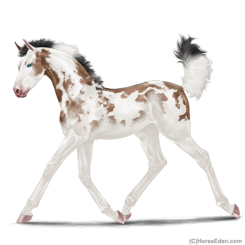 Color: Mahogany Bay Dun Tobiano Splash White Sabino Frame