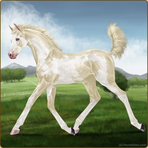 I think she's my favorite foal this year. I really like the cream color with the bright blue eyes and reddish mane and tail
