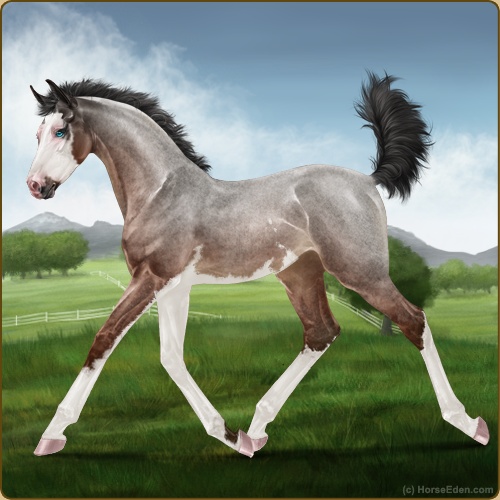 Color: Mahogany Bay Roan Splash White