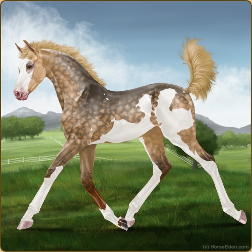 No GP, no A+... but dappled dunalino with a new splash coat that has a white tail. :D
