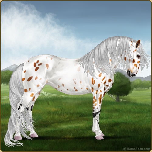Color: Silver Copper Bay Varnish Leopard Appaloosa