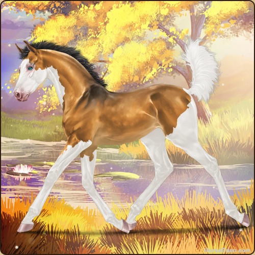 Color: Golden Bay Dun Splash White Sabino