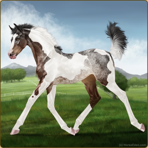 Color: Brown Tobiano Rabicano