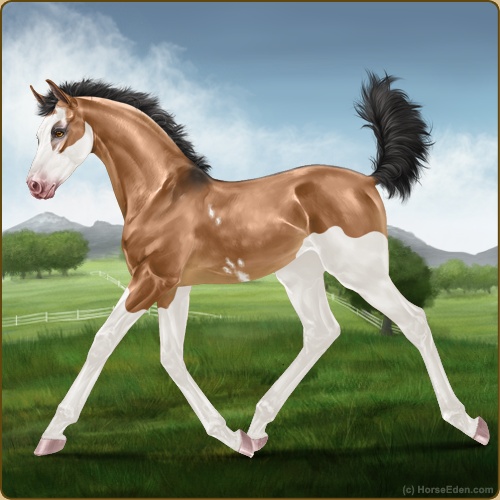 Color: Light Bay Dun Splash White Sabino