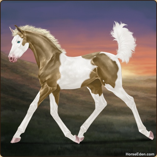 Color: Chocolate Palomino Tobiano Splash White