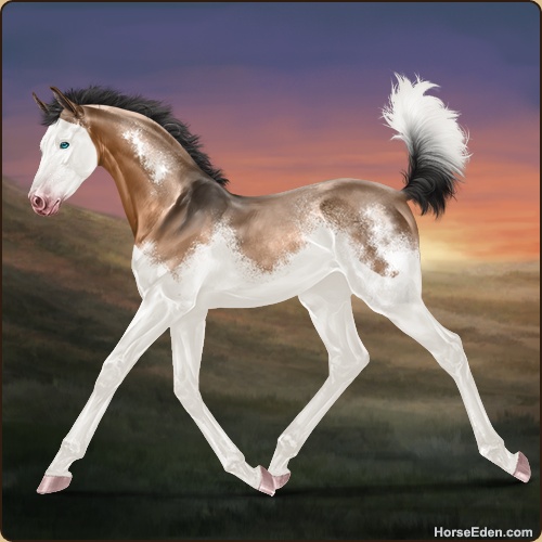 Color: Light Bay Dun Splash White Sabino