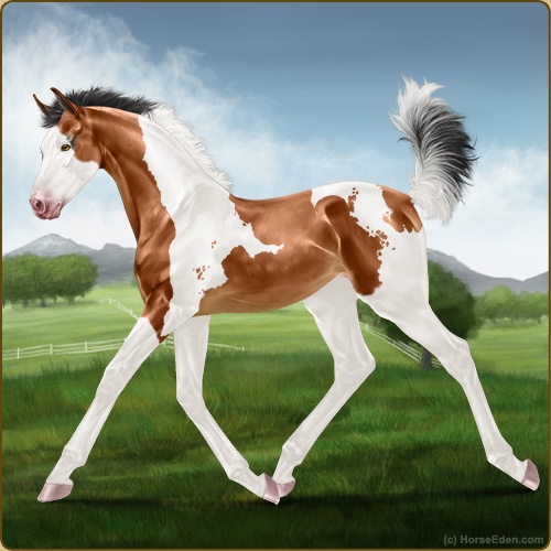 Color: Light Bay Tobiano Splash White