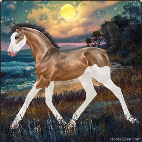 Color: Light Bay Dun Splash White Sabino