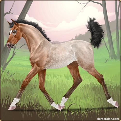 Color: Light Bay Roan Rabicano Varnish Frost Appaloosa