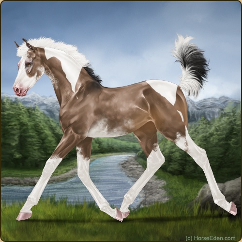 Color: Brown Dun Tobiano Splash White Sabino