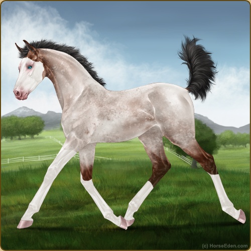Color: Mahogany Bay Roan Splash White Varnish Snowflake Appaloosa