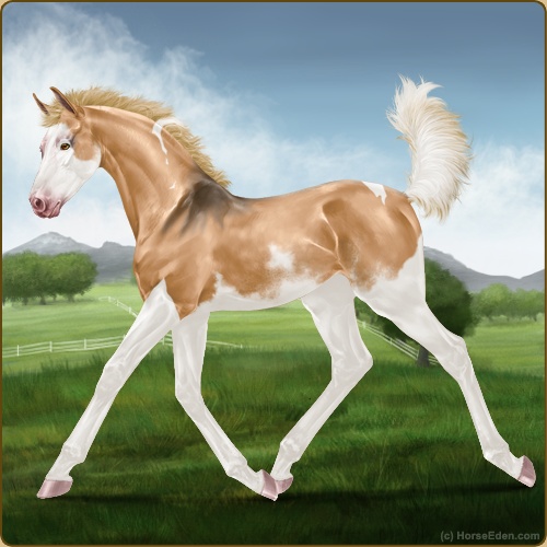 Color: Flaxen Red Dun Tobiano Splash White Sabino