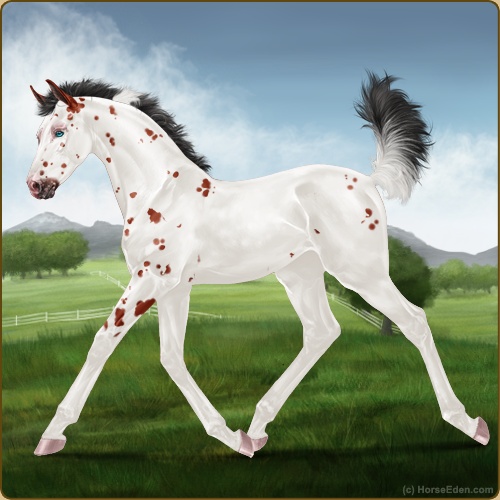 Color: Blood Bay Tobiano Frame Varnish Leopard Appaloosa