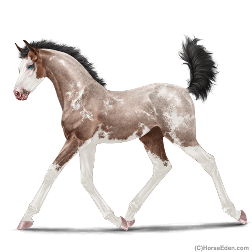Color: Mahogany Bay Roan Splash White Sabino