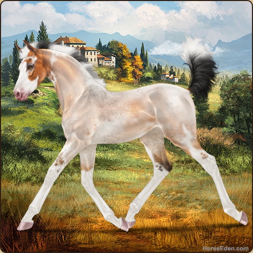 Color: Copper Bay Roan Dun Tobiano Splash White