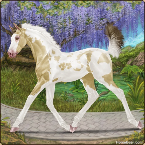 Color: Amber Champagne Tobiano Splash White Frame Varnish Frost Appaloosa