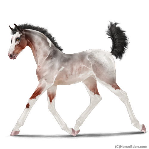 Color: Blood Bay Roan Tobiano Sabino