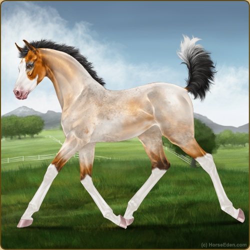 Color: Golden Bay Roan Splash White Varnish Appaloosa