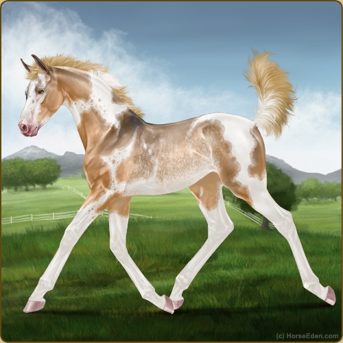 Color: Flaxen Red Dun Tobiano Splash White Sabino Rabicano