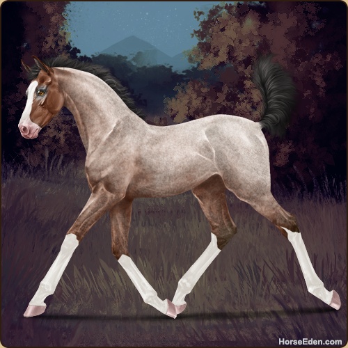 Color: Mahogany Bay Roan Splash White Sabino