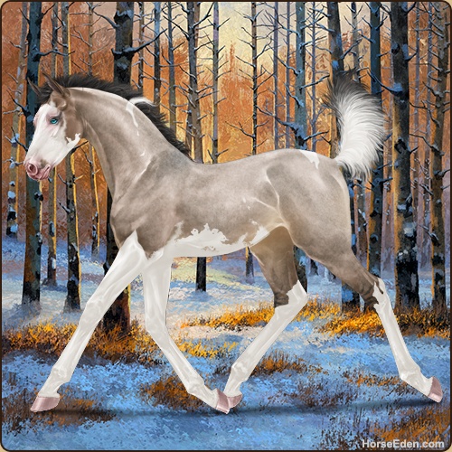 Color: Brown Roan Dun Tobiano Splash White Sabino