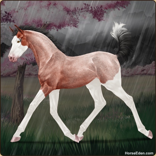 Color: Blood Bay Roan Splash White