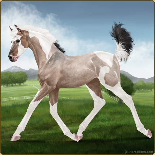 Color: Mahogany Bay Roan Dun Tobiano Sabino
