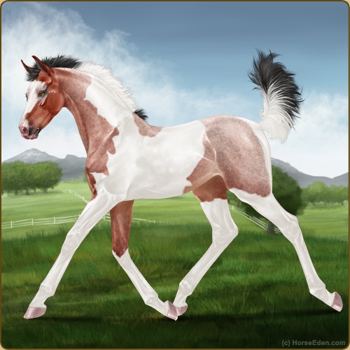 Color: Blood Bay Roan Tobiano Sabino