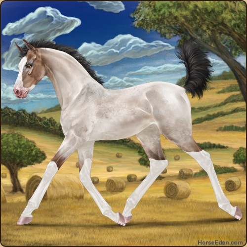 Color: Mahogany Bay Roan Dun Splash White Sabino