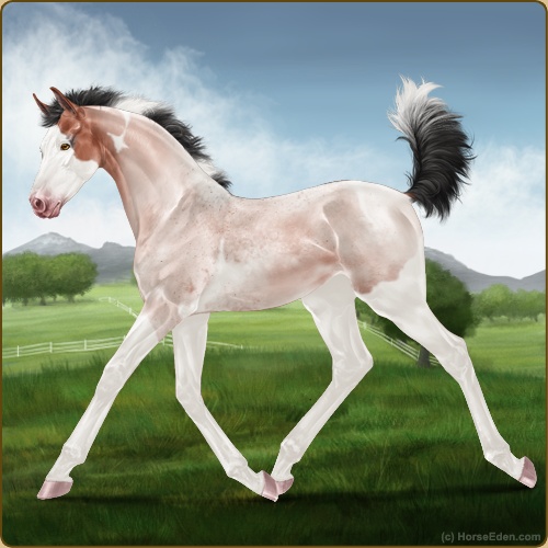 Color: Blood Bay Roan Dun Tobiano Splash White Sabino