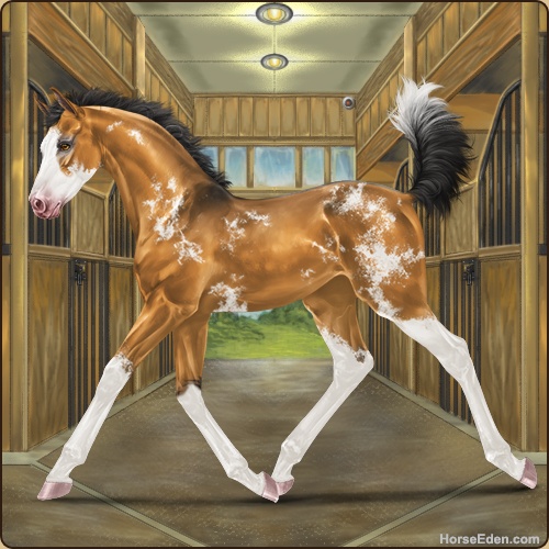 Color: Golden Bay Dun Splash White Sabino