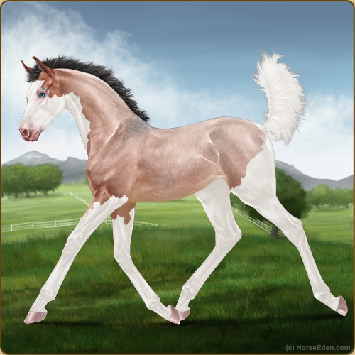 Color: Blood Bay Roan Dun Splash White Sabino