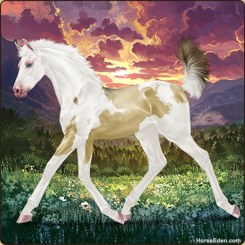Color: Amber Dun Tobiano Splash White