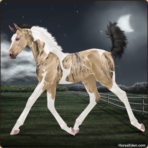 Color: Buckskin Tobiano Brindle