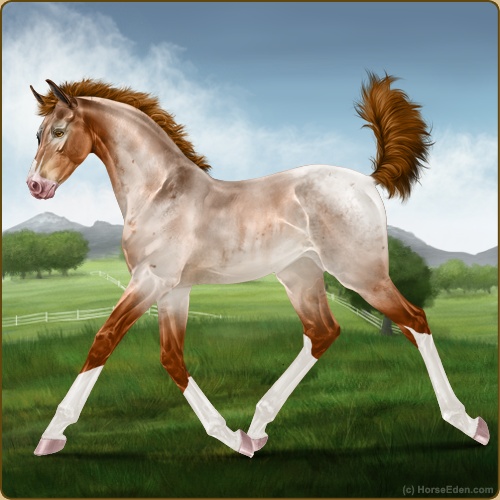 Color: Red Roan Splash WhiteHorse Nbr: 43953585Breed: ThoroughbredSex: MareBirthdate: March 20, 2026Age: 2Birth Year: 200Height: 13.2 Hands