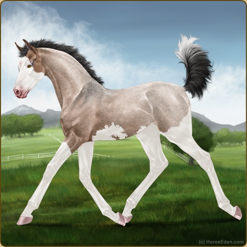 Color: Mahogany Bay Roan Dun Splash White Sabino Rabicano