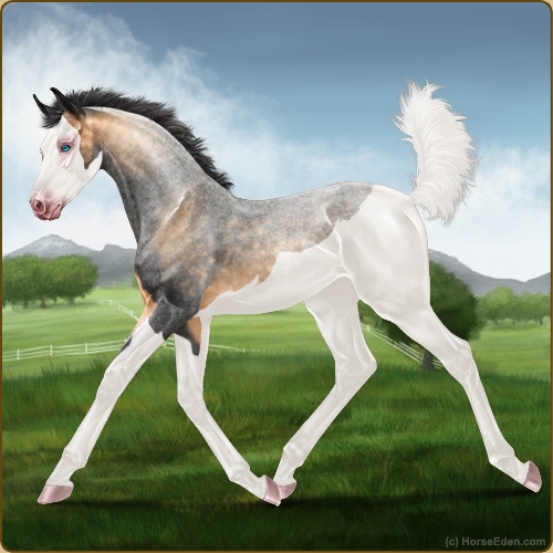 Color: Buckskin Roan Splash White Sabino