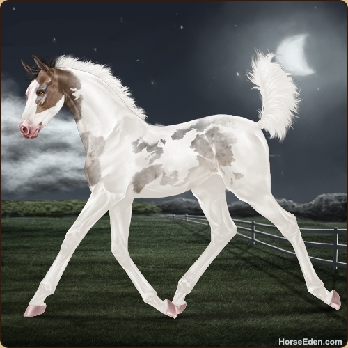 Color: Brown Roan Dun Tobiano Splash White Sabino Frame