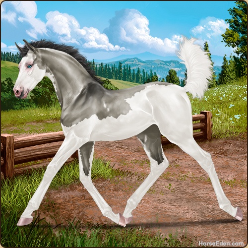 She had sky blue stuff when she was a foal and when she grew up she lost it all