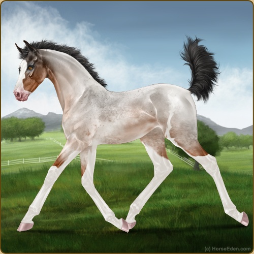 Color: Light Bay Roan Splash White Sabino