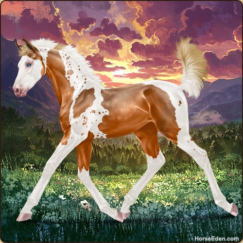 Color: Flaxen Chestnut Tobiano Splash White Sabino