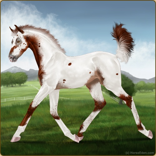 Color: Chestnut Varnish Fewspot Appaloosa