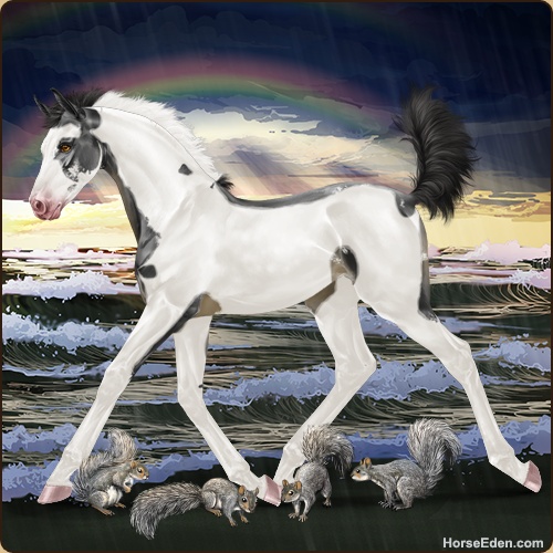 uh... he didn't have those spots as a colt... ummm XD squirrel shenanigans or bend or?? -HEE Click-