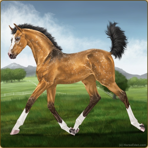 Color: Golden Bay Dun Varnish Snowflake Appaloosa