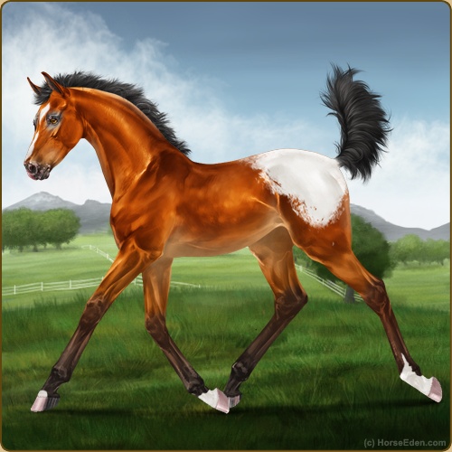 This is my second EEE after coming back, a descendant of my main sire from when I used to play, so happy hes golden bay but I thought he was wild and got so happy at first -HEE Click- Wild bay is SO pretty