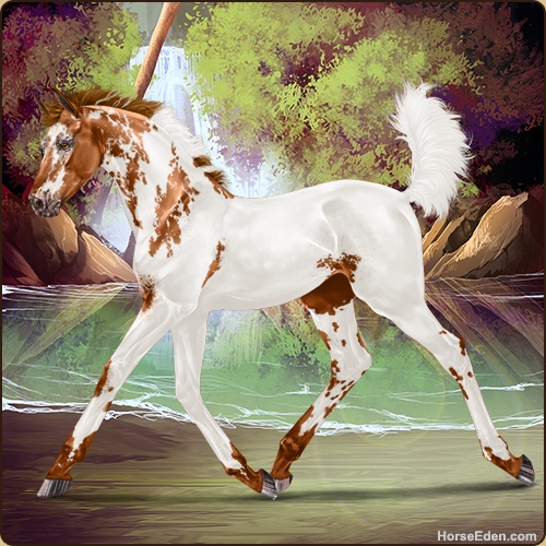 Color: Chestnut Varnish Near Fewspot Appaloosa