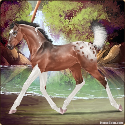 Color: Blood Bay Dun Tobiano Varnish Blanket Appaloosa