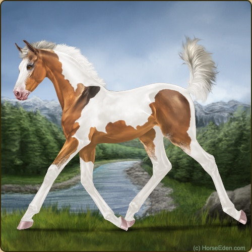 Color: Silver Copper Bay Dun Tobiano Splash White Sabino