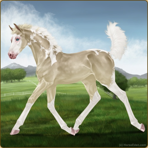 Color: Palomino Pearl Tobiano Splash White Frame