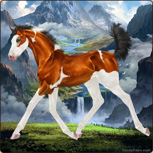 Color: Copper Bay Tobiano Splash White Sabino
